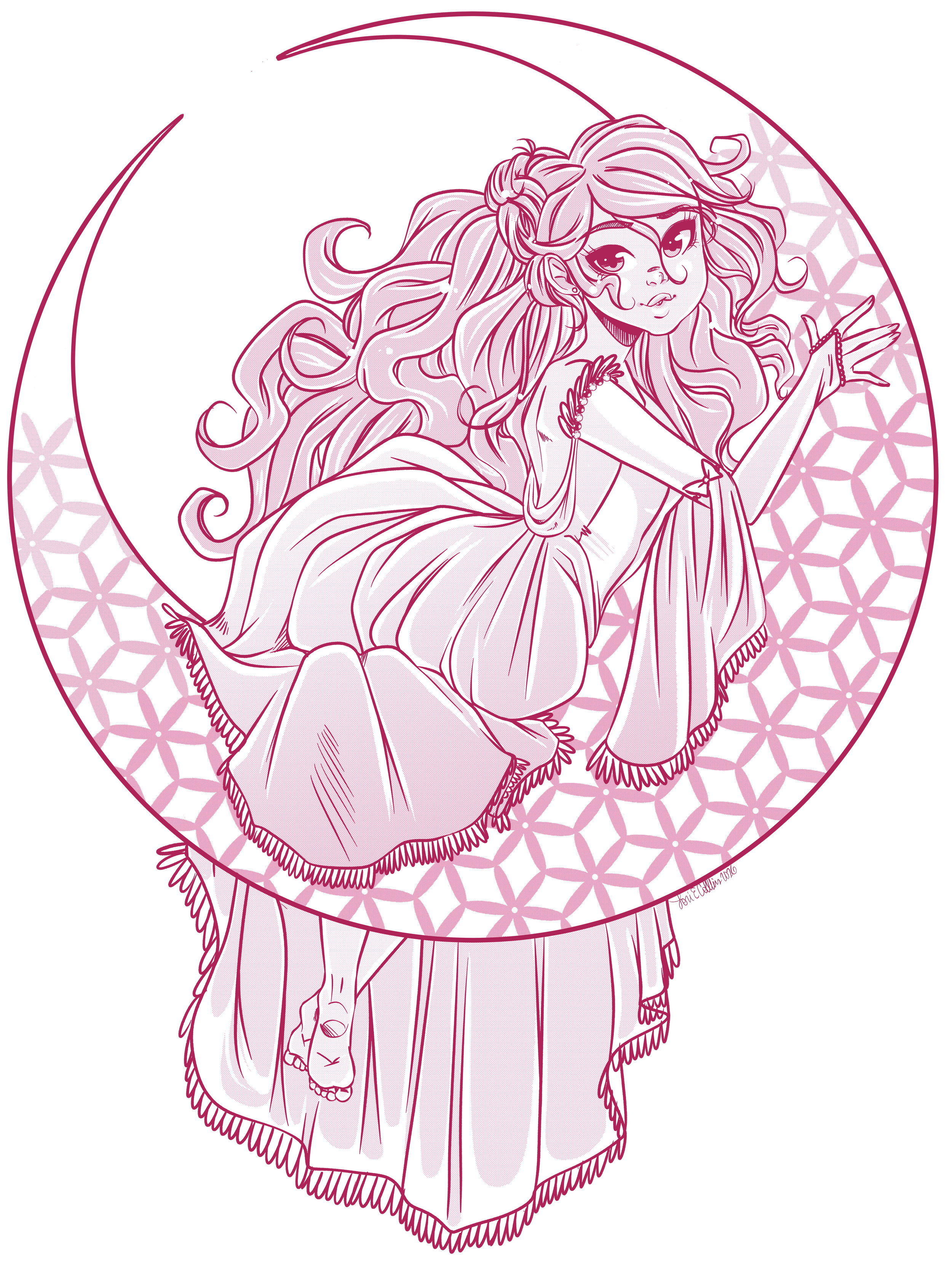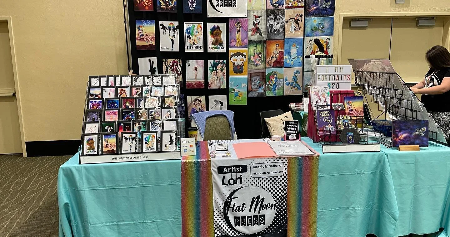 Great question! Flat Moon Press is a small self-publishing company based in Seattle, WA. Created to produce the work of Lori Collins and TalisX, we travel to conventions and renaissance festivals promoting our creations. We make everything from art prints to enamel pins to journals…. with a little bit of beading and flower-crowns on the side for fun.